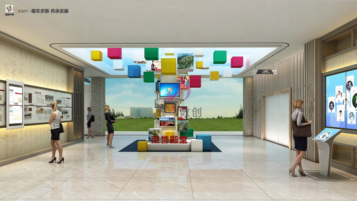 五力數創是專業的數字展館設計施工一體化服務商,運用數字科技展示學校發展史,文化特色,文化底蘊等,五力數創提供數字校史館設計施工整體解決方案。