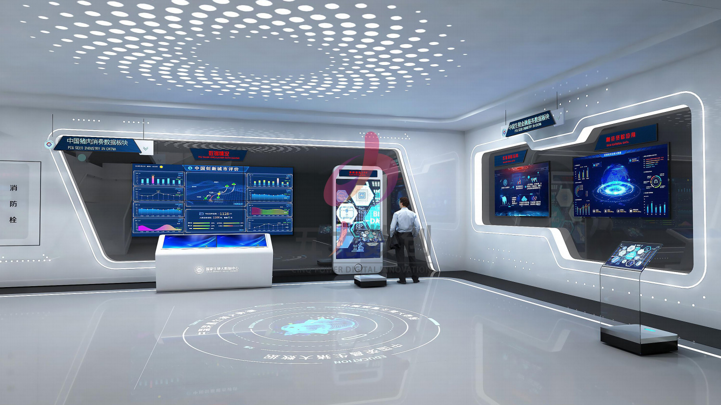 項目介紹:生豬大數據中心聚焦中國生豬完整的產業鏈,以大數據的方式來為榮昌打造獨一無二的生豬大數據中心,致力于生豬產業數字化、數字產業化。整個大數據中心從豬的生產、養殖、交易幾大板塊,通過數字沙盤、互動場景體驗、互動滑軌屏等多種數字多媒體技術來全方位多角度展示生豬全產業鏈的各個環節,助力產業數字化升級,為生豬行業提供準確可靠的決策依據。專精尖技術與產學研層面縱橫結合,全角度、多方位立體聚焦生豬全產業鏈,以明確的觀感呈現信息技術與生豬生產相結合的先進科技,助力生豬產業智能升級,推動數字養豬新基建的發展。